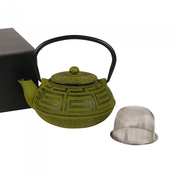 600cc Tetera de Hierro Verde.Enlozada Por Dentro