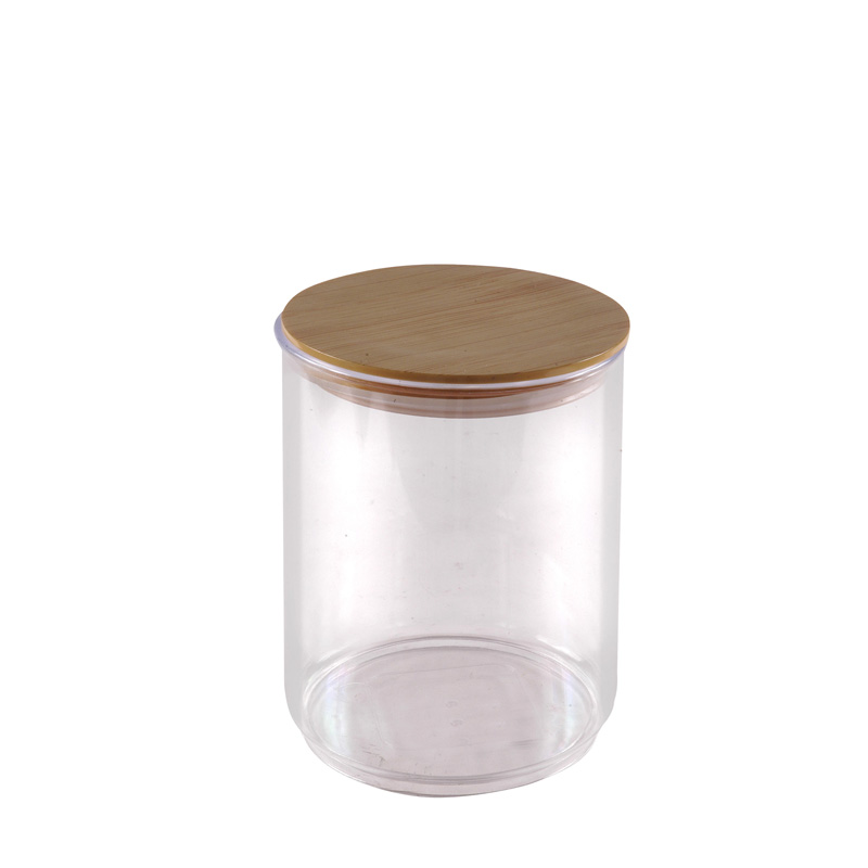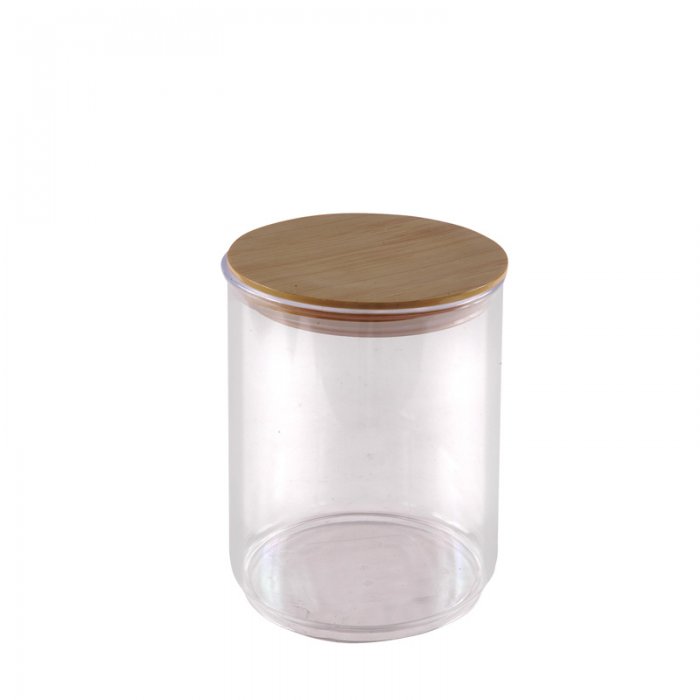 Frasco Acrilico Tapa Madera. Cap: 1,1L / Med: 10x10x19cm
