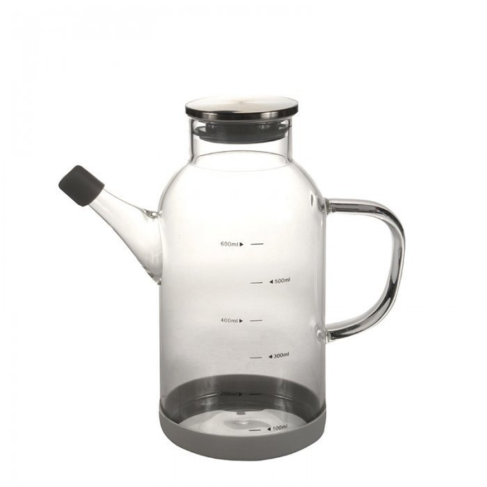 Jarra Aceitera de Vidrio Tapa de Acero con Medidor. Cap.: 400cc Med.: 13.5*16cm