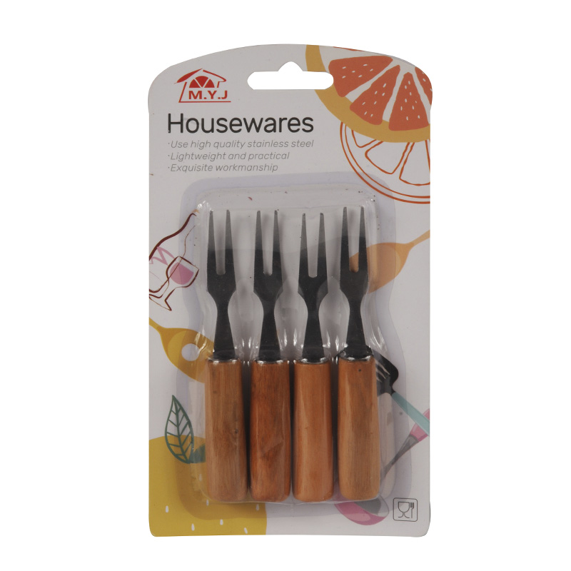 Tenedor Copetin de Acero con Mango de Plastico Set x 6pcs / Med.: 10cm.