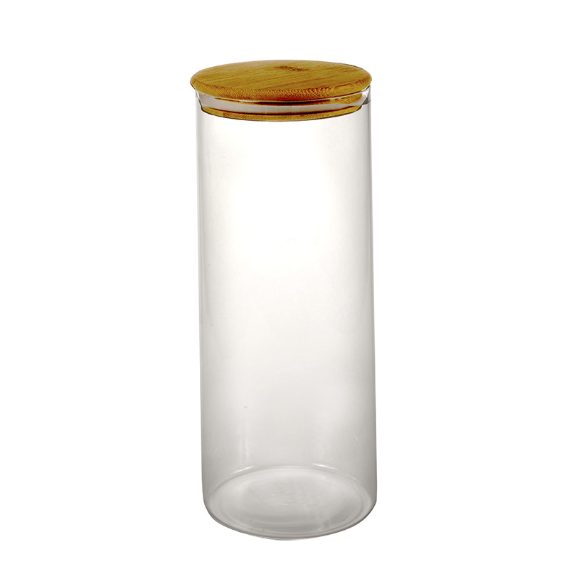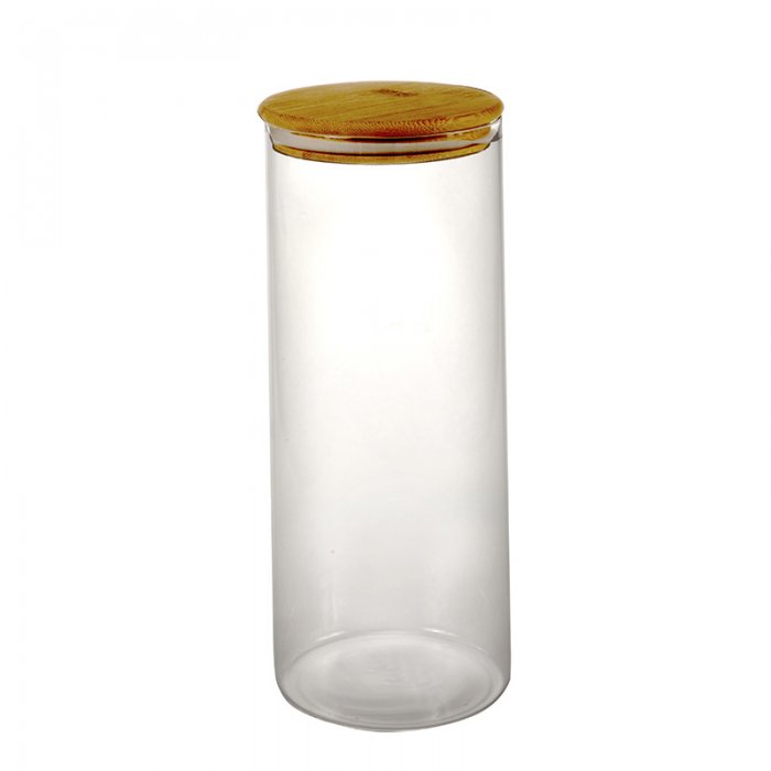 Frasco de Vidrio con Tapa de Madera / Med.: 10*10*22cm - 1400ml.