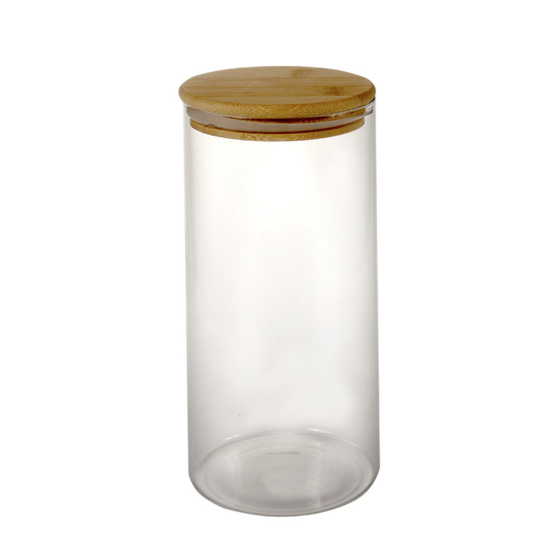 Frasco de Vidrio con Tapa de Madera / Med.: 10*10*17cm - 1000ml.