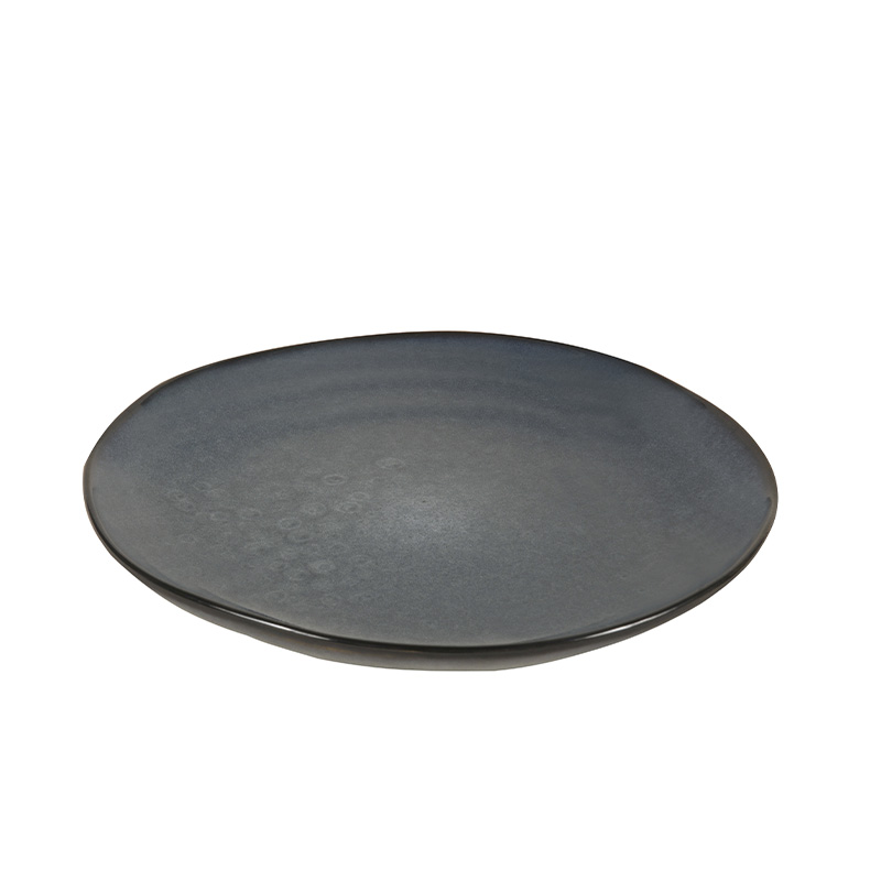 Plato Redondo con Deco Porcelana, Color Negro / Med.: 26x26x2cm.