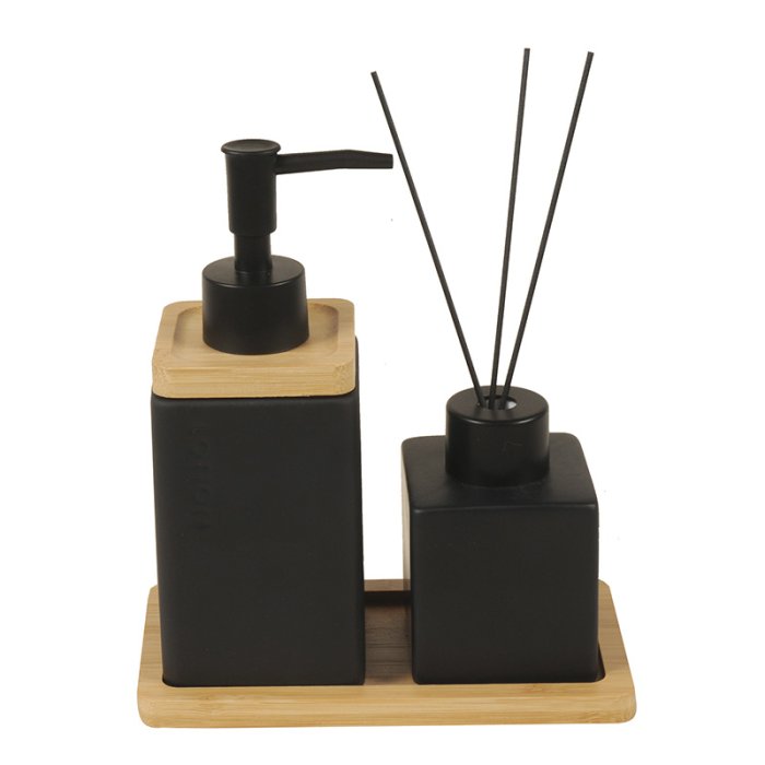 Set de Baño Negro 6 Piezas con Tapa de Madera, Color Negro