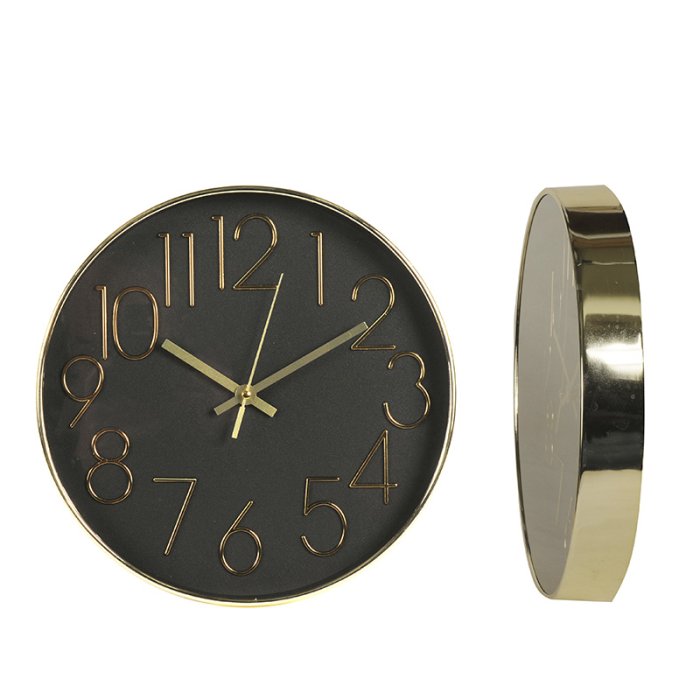 Reloj de Pared, Color Negro y Dorado / Med.: 45cm.