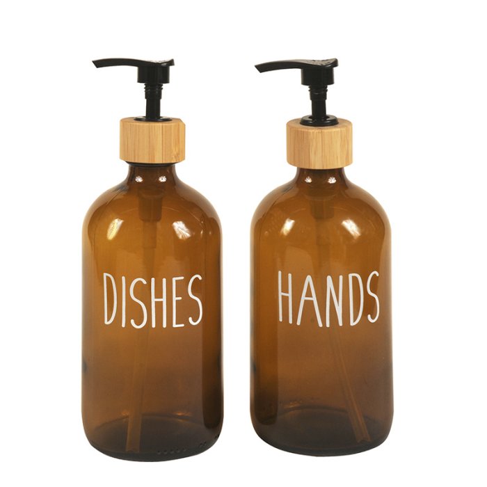 Dispenser de Jabon con Aromatizador y Bandeja de Madera, Color Negro