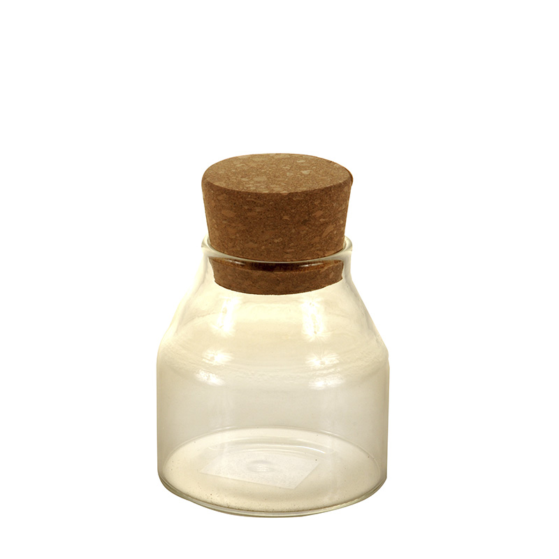 Frasco de Vidrio con Tapa de Corcho / 9x15cm.