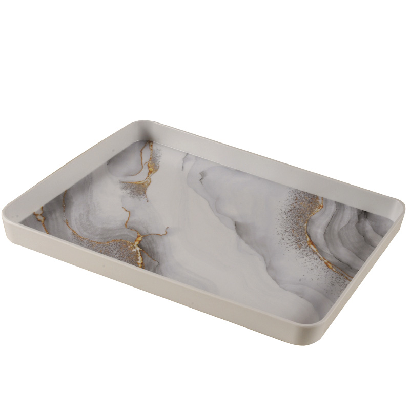 Bandeja de Melamina .Rect, Color Bco/Dorado / Med.: 30x19cm.