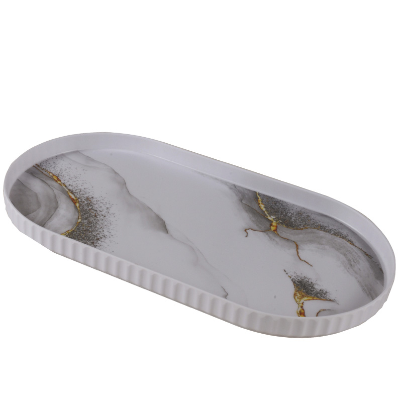 Bandeja de Melamina, Color Blanco y Dorado / Med.: 33x17cm.