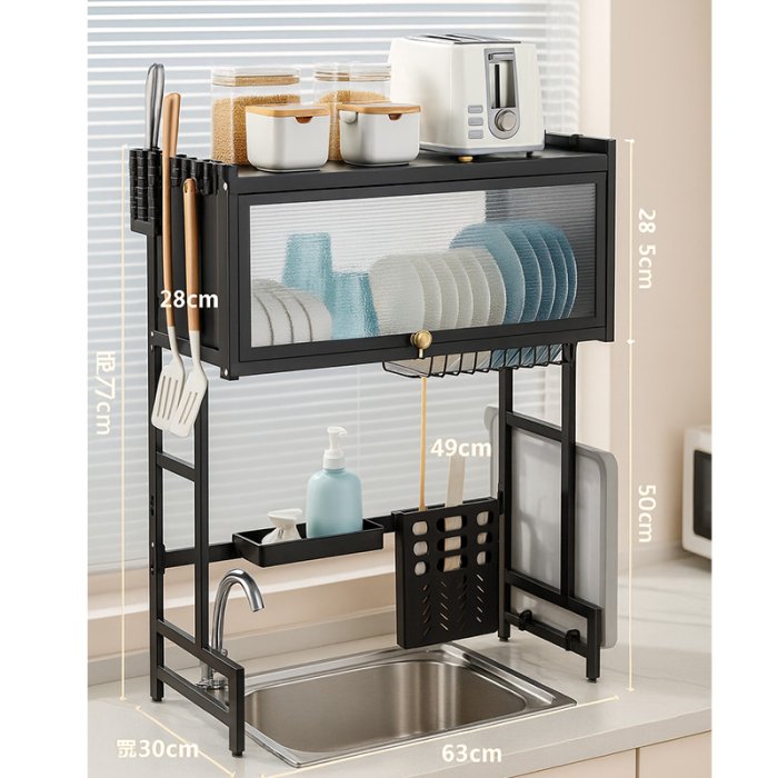 Org. y Escurridor de Alacena de Metal Color Negro / Med.: 85*30*80cm.