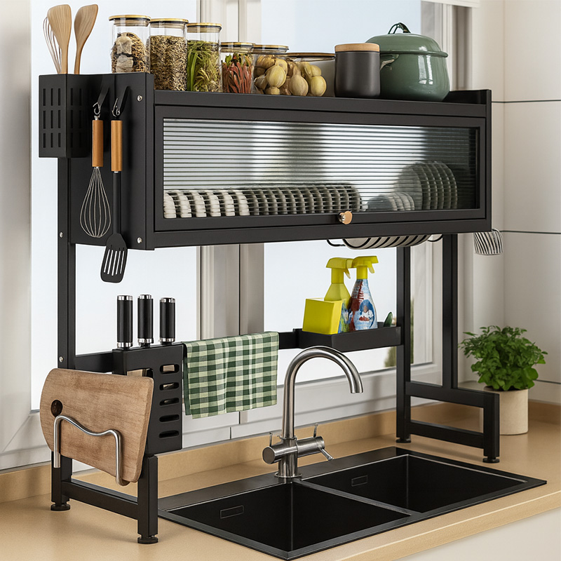 Org. y Escurridor de Alacena de Metal Color Negro / Med.: 65*30*80cm.