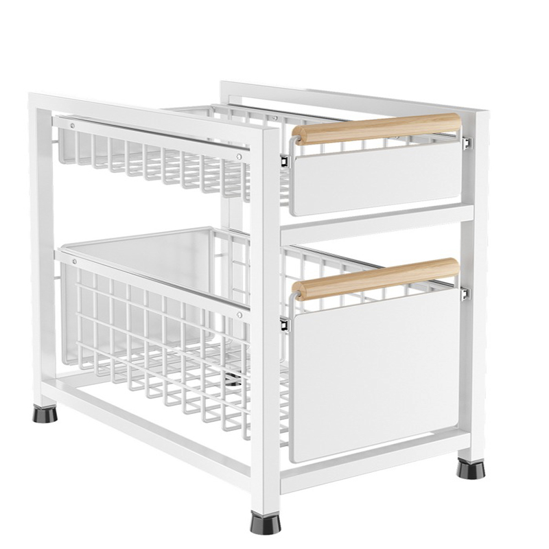 Organizador Extendible con Mangos de Madera, Color Blanco / 30x40x40CM