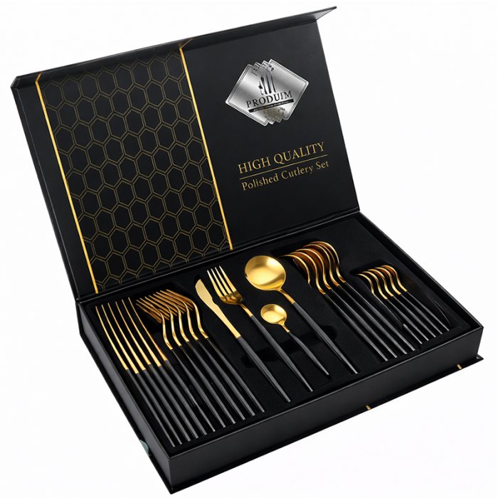 Set de Cubiertos x 24pcs en Caja de Regalo, Color Negro